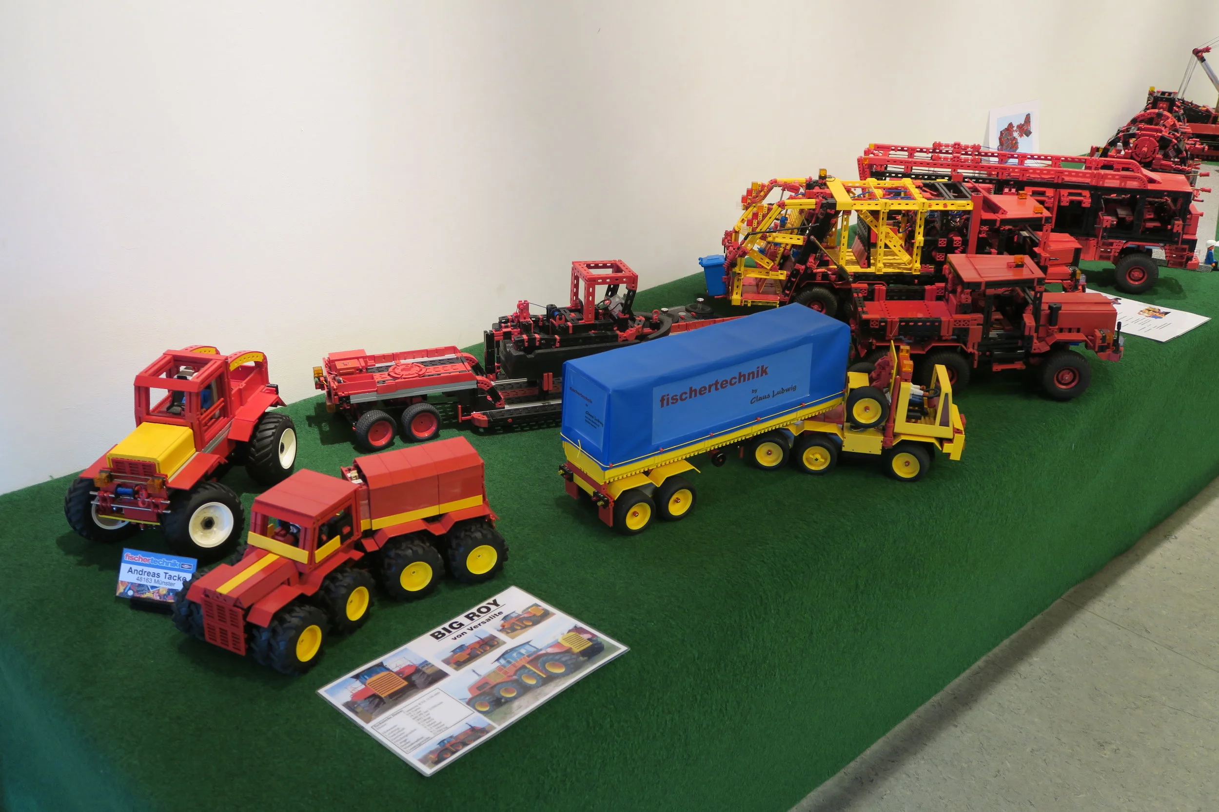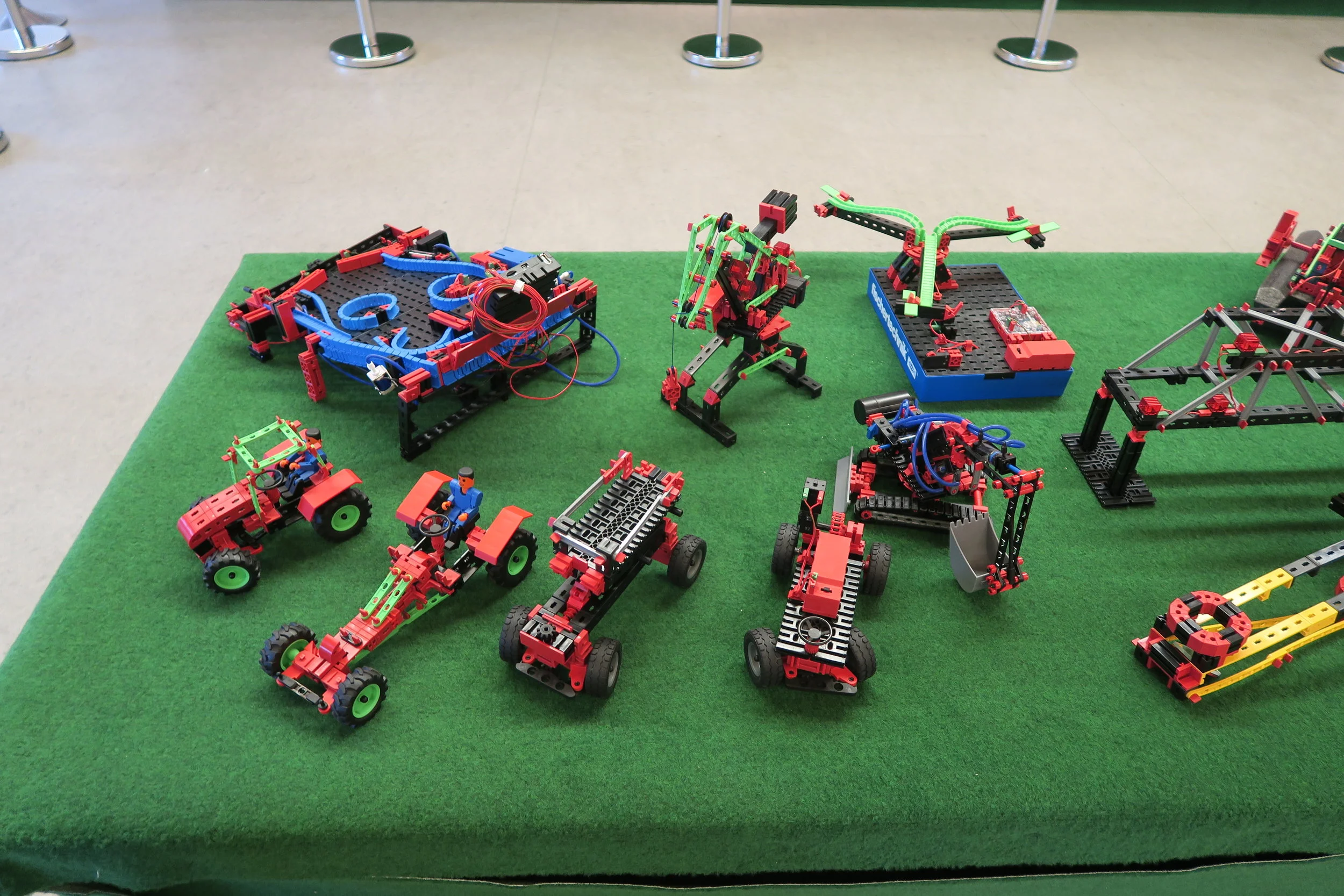 fischertechnik ist ein Geschäftsbereich der Unternehmensgruppe fischer und fertigt ausschließlich in Deutschland. Der 1958 von Artur Fischer (1919–2016) entwickelte Kunststoffdübel, der sich in fast jeder Wand befindet, ist sicherlich das bekannteste Produkt der Unternehmungsgruppe fischer. Das fischertechnik-System beruht auf einem Baustein, an den an allen sechs Seiten angebaut werden kann. Er hat dazu an einem Ende einen Zapfen, der in die Nuten an den Längsseiten oder der dem Zapfen gegenüberliegenden Seite geschoben werden kann. Durch diese patentierte Anbaubarkeit an allen sechs Seiten und die Möglichkeit, die Bausteine in den Nuten der Längsseiten beliebig gegeneinander zu verschieben, ist das System auch über das Grundraster von 15 Millimetern hinaus flexibel. fischertechnik wurde 1964 ursprünglich als Weihnachtsgeschenk für die Kinder von Geschäftspartnern entwickelt. Aufgrund der guten Resonanz wurde 1965 die Entscheidung getroffen, diese Erfindung als Baukastensystem auf dem Markt anzubieten. Die ersten 1.000 Baukästen spendete der Erfinder Artur Fischer zu Weihnachten 1965 der Aktion Sorgenkind. fischertechnik hatte von Beginn an auch einen pädagogischen Anspruch. So entstand bereits in den 1960er Jahren das fischertechnik-Schulprogramm. fischertechnik-Bausätze werden auch heute noch im Schulunterricht eingesetzt. Eine Vier-Kanal-Fernsteuerung für die Großmodelle erschien 1983. Interfaces zu verschiedenen Computersystemen gibt es seit 1985. Hinter den Produkten von fischertechnik steckt seit Anbeginn die Philosophie: „Technik spielerisch begreifen.“ Da auch über 25 LEGO Technikmodelle in der Austellung zu sehen waren, war ein direkter Vergleich zwischen fischertechnik und LEGO Technic möglich. Die Modelle waren Leihgaben von Sammlern aus Norddeutschland und aus Westfalen sowie der Firma fischertechnik. Die Ausstellung wurde von zahlreichen Sponsoren unterstützt.